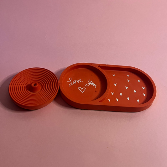 Ensemble plateau porte encens rouge