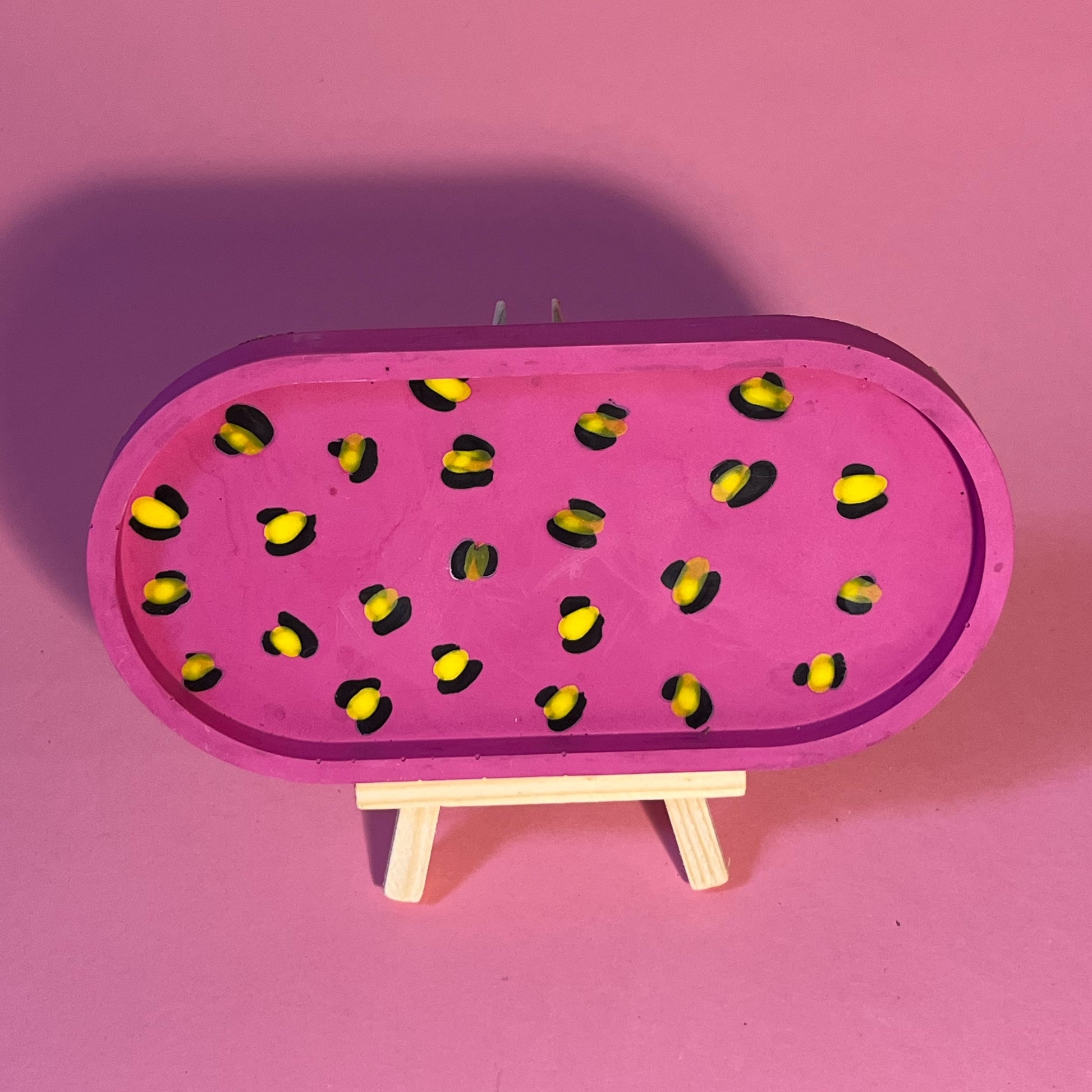 Plateau jesmonite oval rose léopard