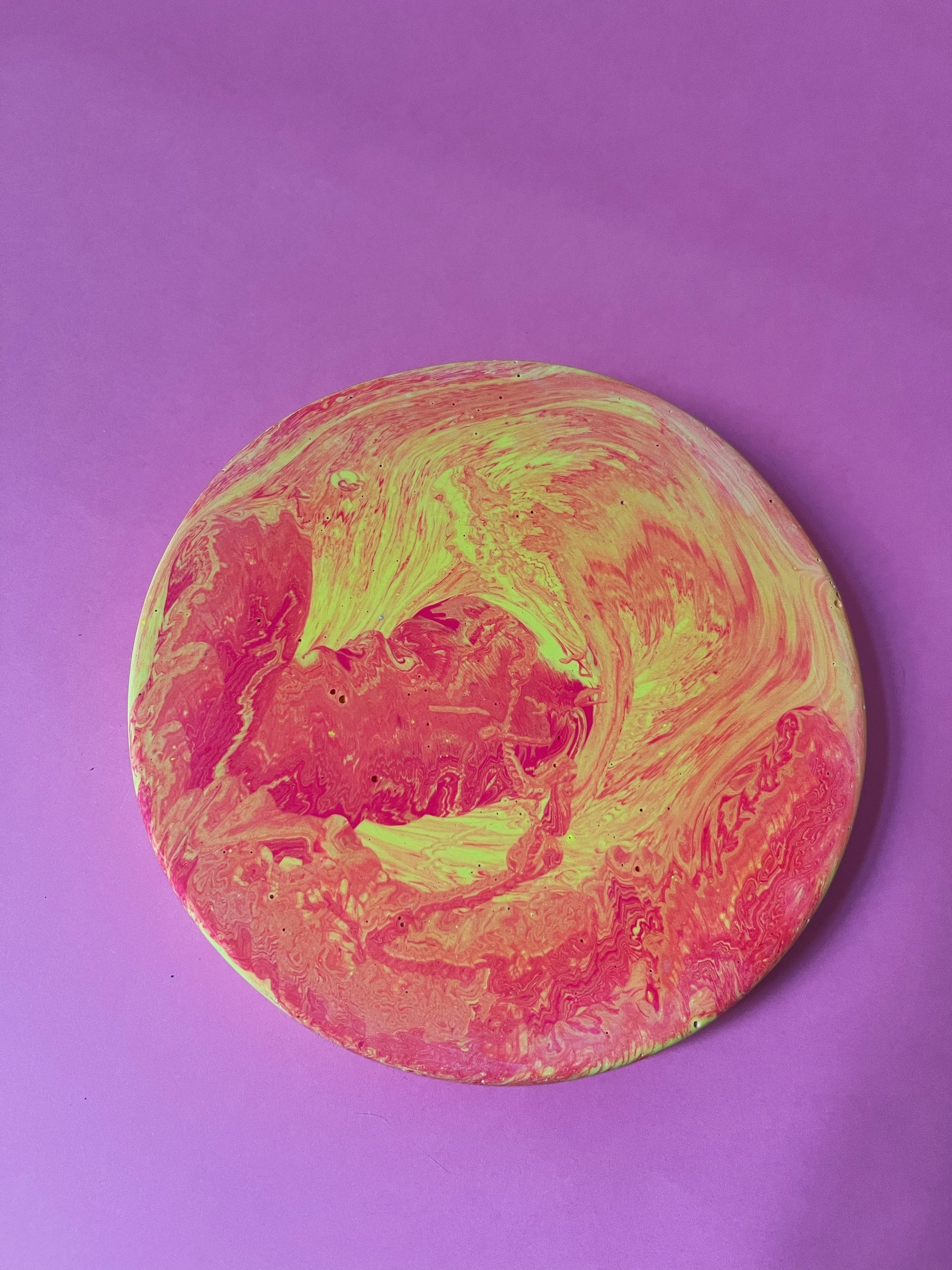 Plateau jesmonite rond coeur jaune rose