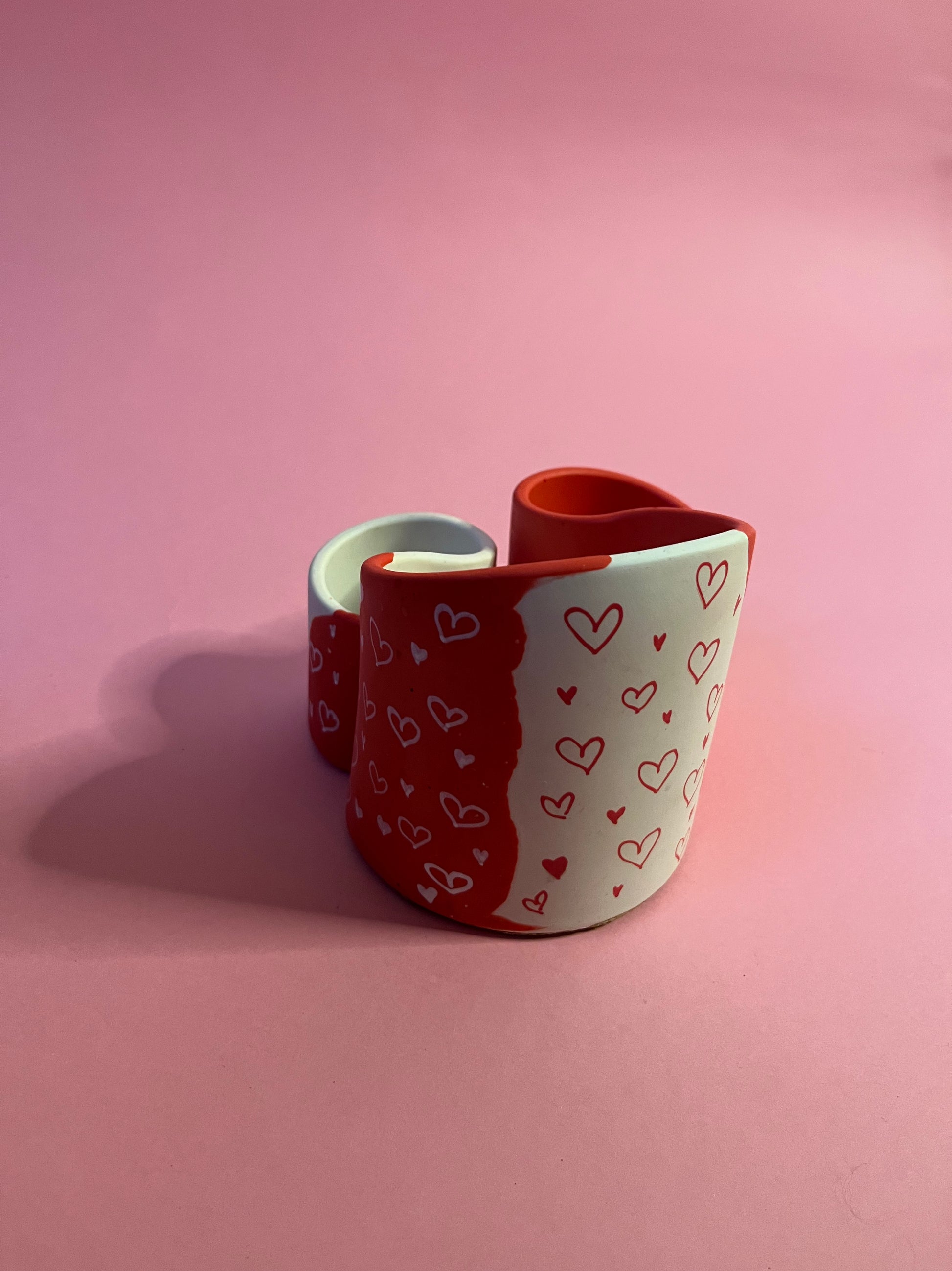 Porte crayons/pinceaux jesmonite rouge et blanc coeur